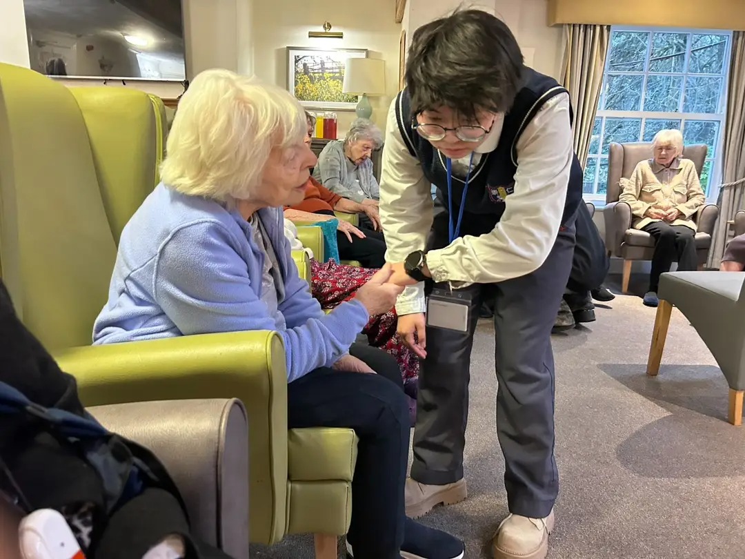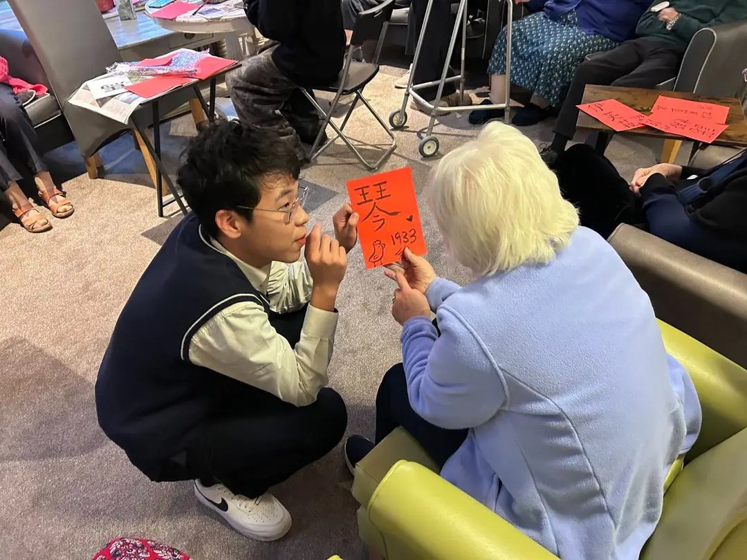 英國實習單位特地安排學生前往Newcastle當地養老院Craghall Care Home,讓學生用英語分享農曆新年與中國文化,學生還親手揮毫寫書法,和長輩們近距離互動,青銀共融加上文化交流,長輩們開心不已,收下學生們的滿滿祝福 🎁🎀🎁
